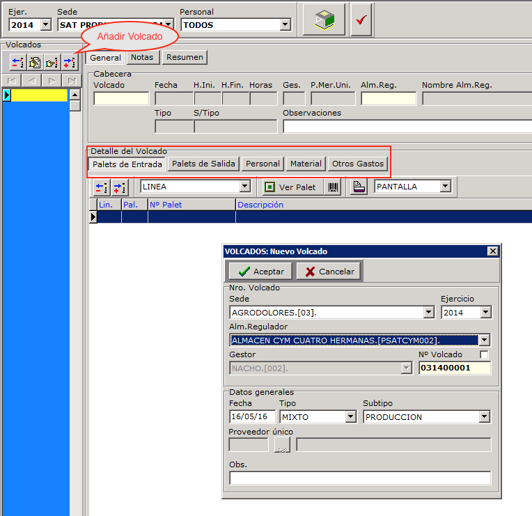 RECUERDE: Los volcados de tipo UNICO garantizan la trazabilidad completa desde el origen al destino. Se puede conocer con total exactitud el proveedor de cualquier palet entregado a un cliente.