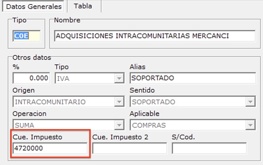 Ciertos modos contables como el CI (Compra Intracomunitaria) requieren de una autoliquidación de IVA (Autofactura), se debe indicar en Administración/Auxiliares/Impuestos/Modos.