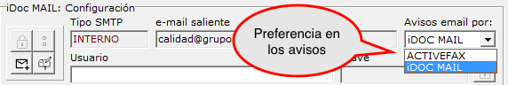 Es posible configurar para cada usuario el sistema de envío preferido. La pantalla de envio permite configurar una firma, enviar en copia y adjuntar documentos. Los correos se envian en formato de texto plano.