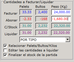En la imagen, será facturado al cliente 24,000 Kg, se deducirá de 22,320 Kg de stock y pagará al proveedor de 22,320 Kg.