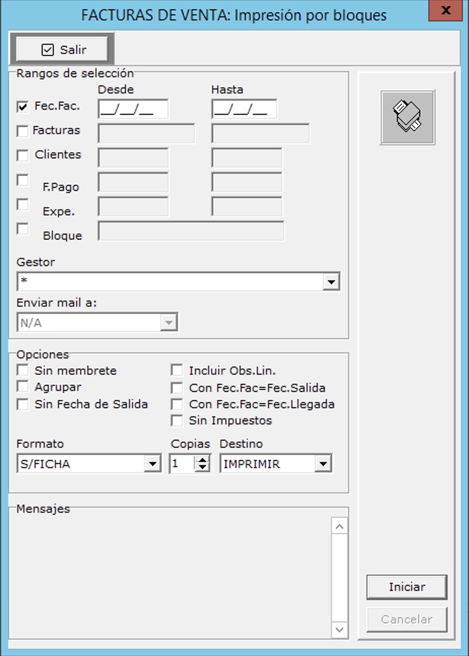 En la parte superior derecha se muestra un icono con una impresora que nos permite mostrar la siguiente pantalla: