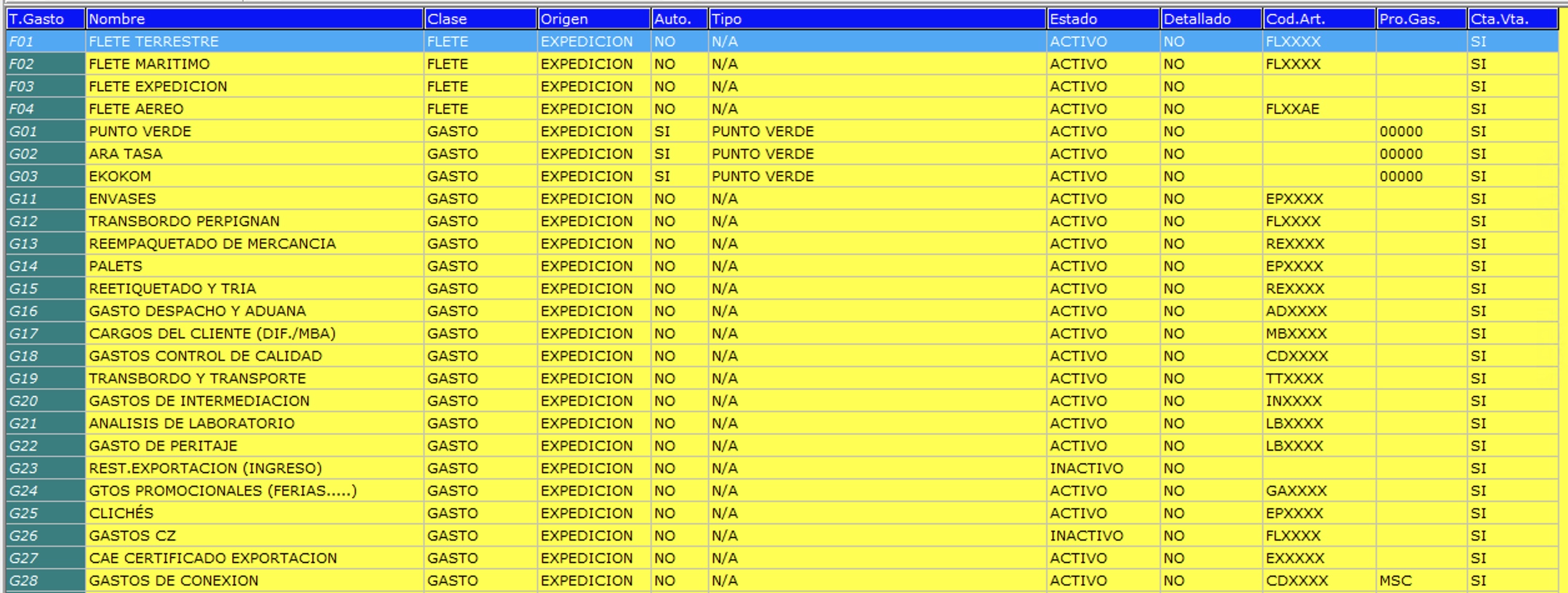 Los tipos de gastos se pueden gestionar en Agencia/Auxiliares/Tipos de Gastos, podemos crear nuevos tipos de gastos según nuestras necesidades.