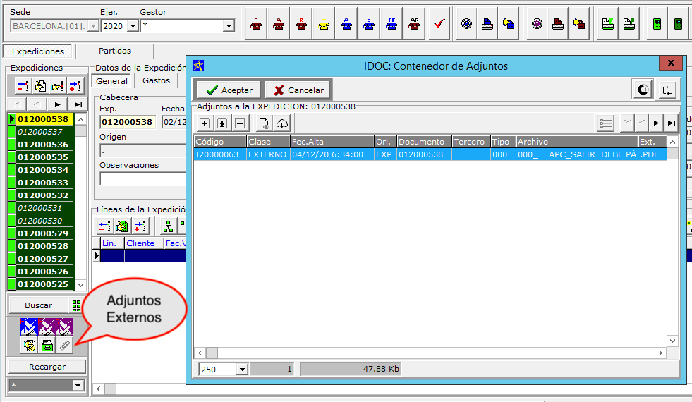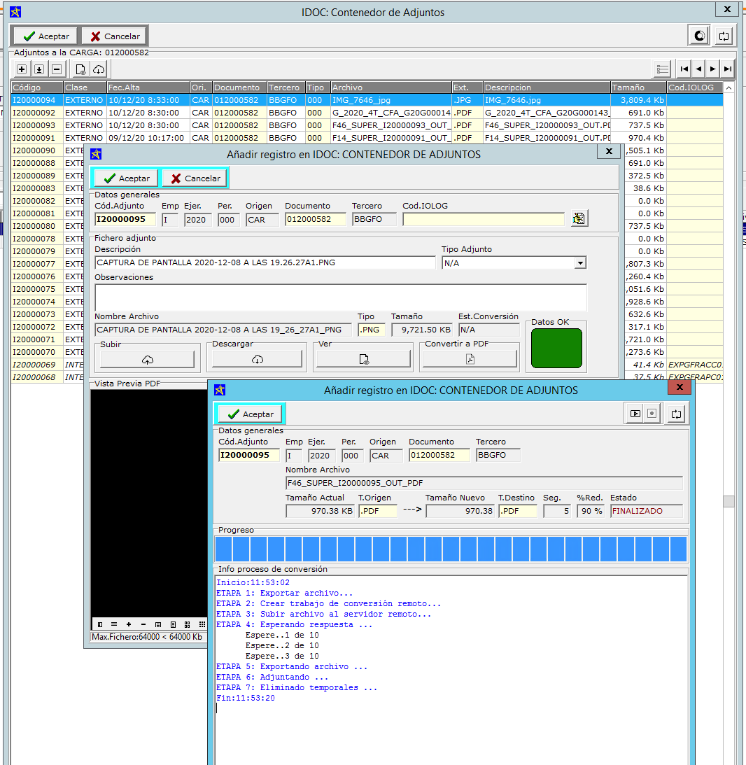 Todos los documentos relacionados con las cargas y expediciones pueden ser archivados en la gestión documental iDoc CORE, con el objetivo de eliminar el papel físico y de acceder directamente a los documentos relacionados con las expediciones.