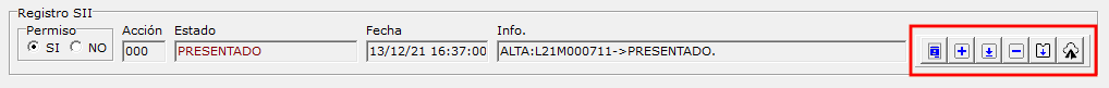 Por otro lado, las facturas tambien se pueden presentar individuamente seleccionando una de ellas y utilzando los botones de la siguiente imagen, que permiten dar de alta, modificar, anular y consultar cualquier factura presentada en el SII: