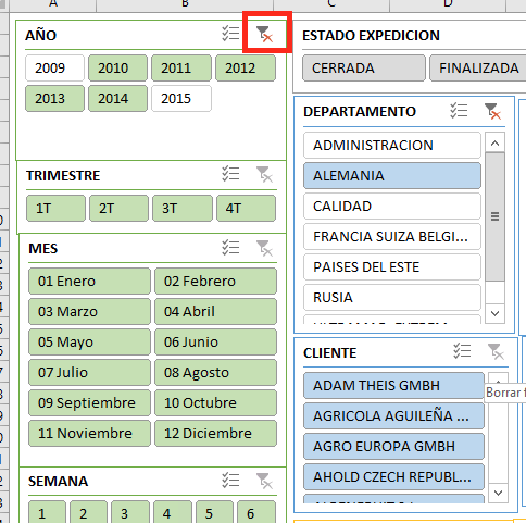 Para liberar los filtros aplicados hay que ir a cada campo en la opción que se muestra en esta imagen.