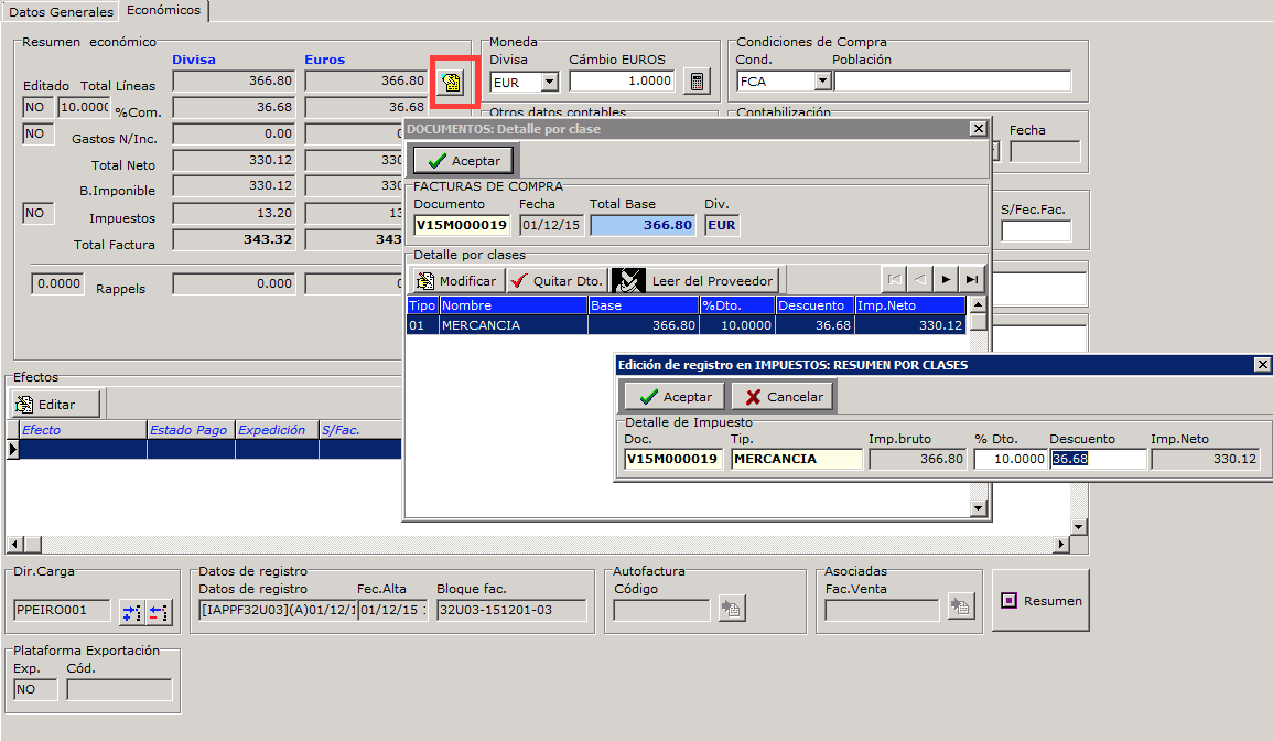 ¿Puedo cambiar el redondeo de una factura de compra para que me coincida con la que me he recibido del proveedor?