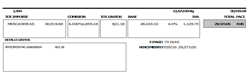 Sin embargo, en algunos casos como con los agricultores, antes de empezar la campaña se suele entregar un anticipo por el compromiso de recolectar ciertas parcelas. En dicho anticipo se reflejan datos como los tipo de producto, kilos estimados, parcela, etc. Cuando la campaña acaba se compensa el anticipo contra las cuentas de venta del agricultor.