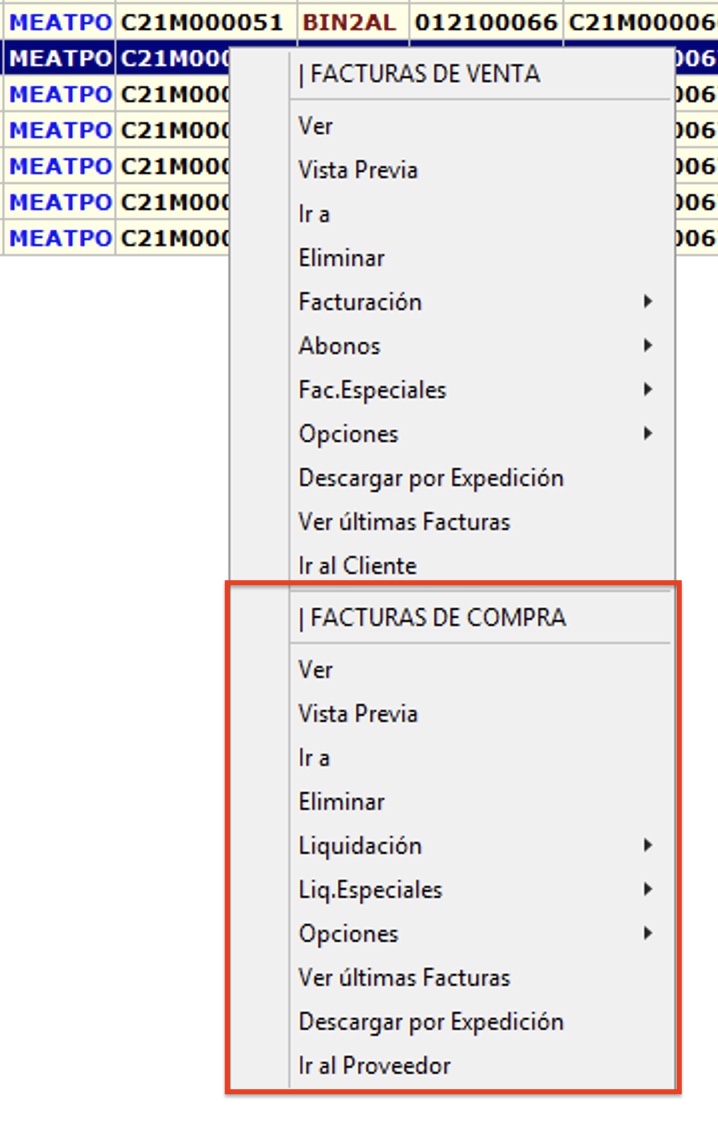 Con la opción Ir a se accede directamente a la factura en la parte de Administración/Facturas de Compra / Mantenimiento, es equivalente al botón que se mostró anteriormente.