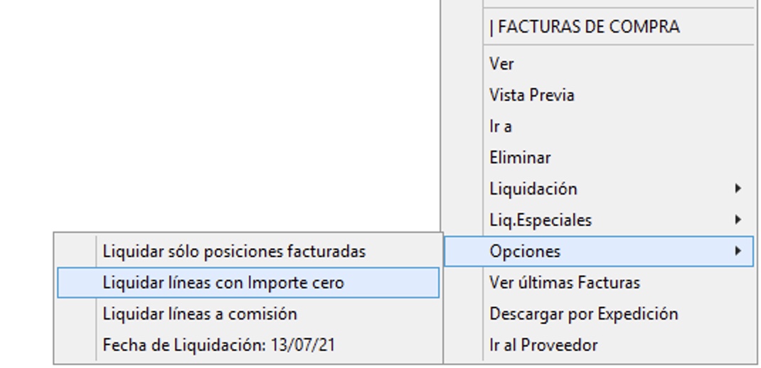 En el menú opciones de liquidación se puede activar o desactivar las siguientes opciones: