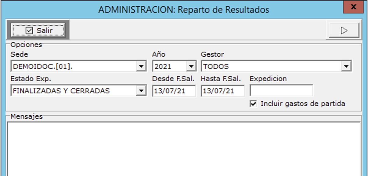 Desde esta pantalla se pueden calcular los resultados de todas las expediciones a la vez para garantizar que los informes de resultados de final de periodo son correctos.
