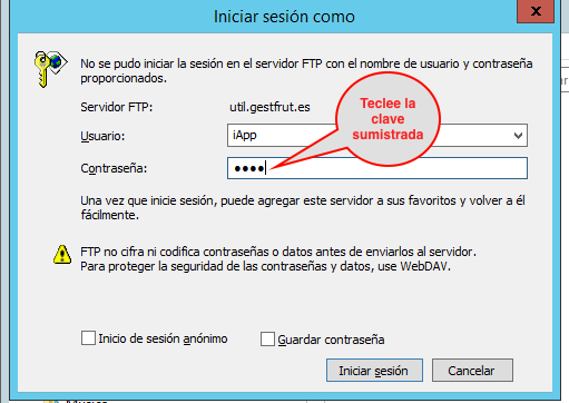Para usar este método debe descarga un cliente del sitio FTP: ftp://util.gestfrut.es